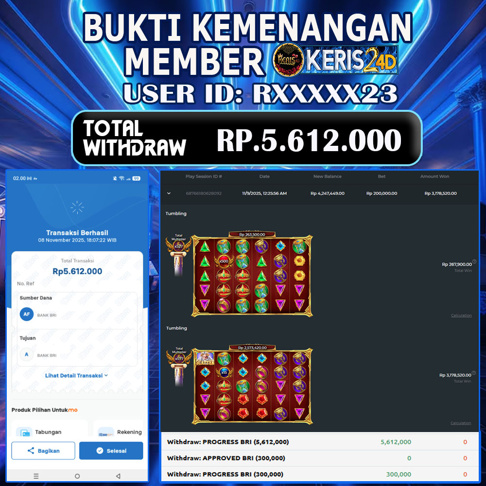 Setiap hari, member KERIS24D berhasil meraih jackpot besar dari berbagai provider slot ternama yang kami sediakan, seperti Pragmatic Play, Habanero, PG Soft, dan masih banyak lagi. Kami secara rutin menampilkan bukti screenshot atau rekapan kemenangan yang berhasil diraih, mulai dari kemenangan ratusan ribu hingga puluhan juta rupiah. Semua slip kemenangan ini kami hadirkan untuk membuktikan bahwa di KERIS24D, peluang menang itu nyata.