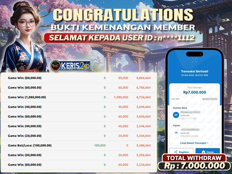 TOTAL KEMENANGAN : Rp7.000.000 ,-
