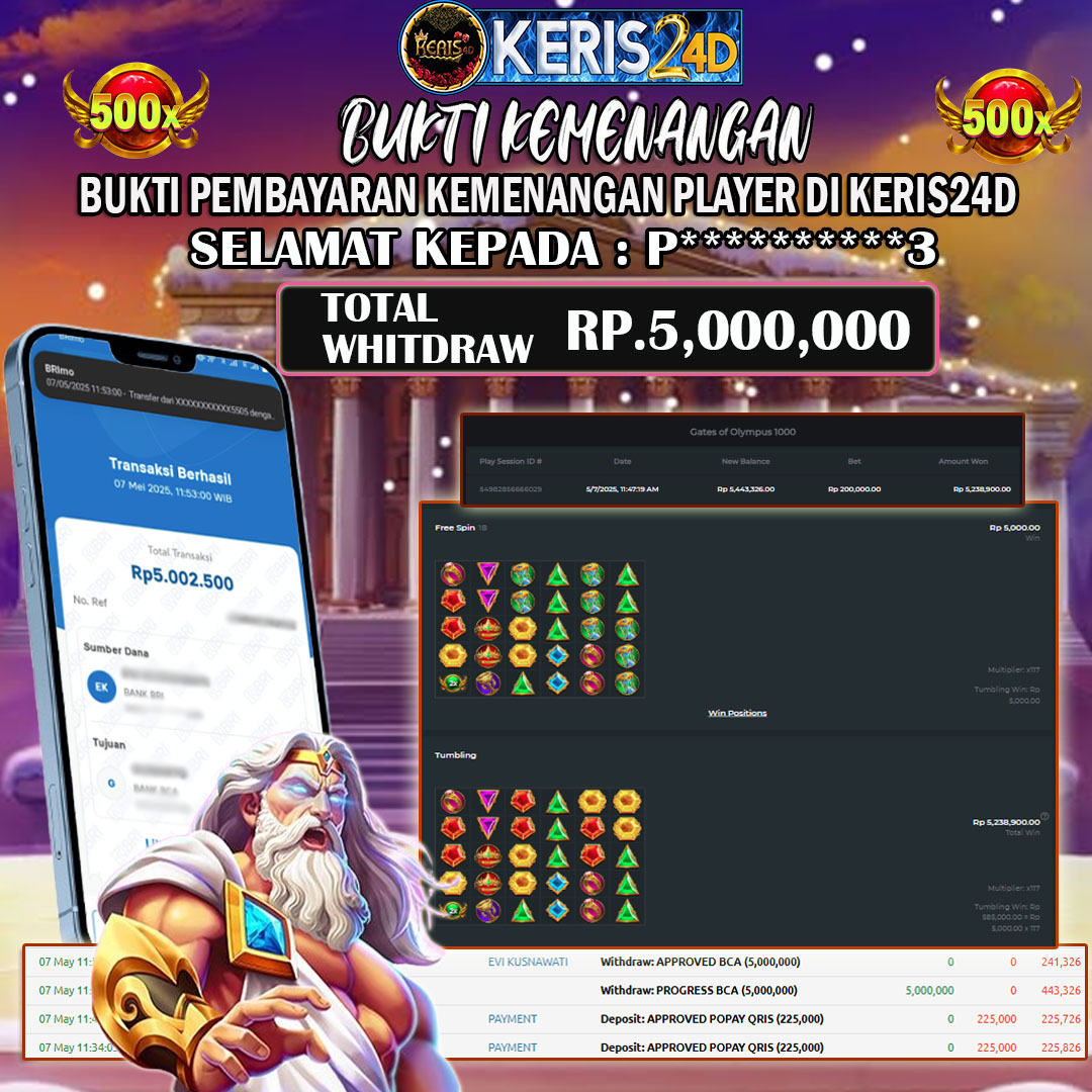 Setiap hari, member KERIS24D berhasil meraih jackpot besar dari berbagai provider slot ternama yang kami sediakan, seperti Pragmatic Play, Habanero, PG Soft, dan masih banyak lagi. Kami secara rutin menampilkan bukti screenshot atau rekapan kemenangan yang berhasil diraih, mulai dari kemenangan ratusan ribu hingga puluhan juta rupiah. Semua slip kemenangan ini kami hadirkan untuk membuktikan bahwa di KERIS24D, peluang menang itu nyata.